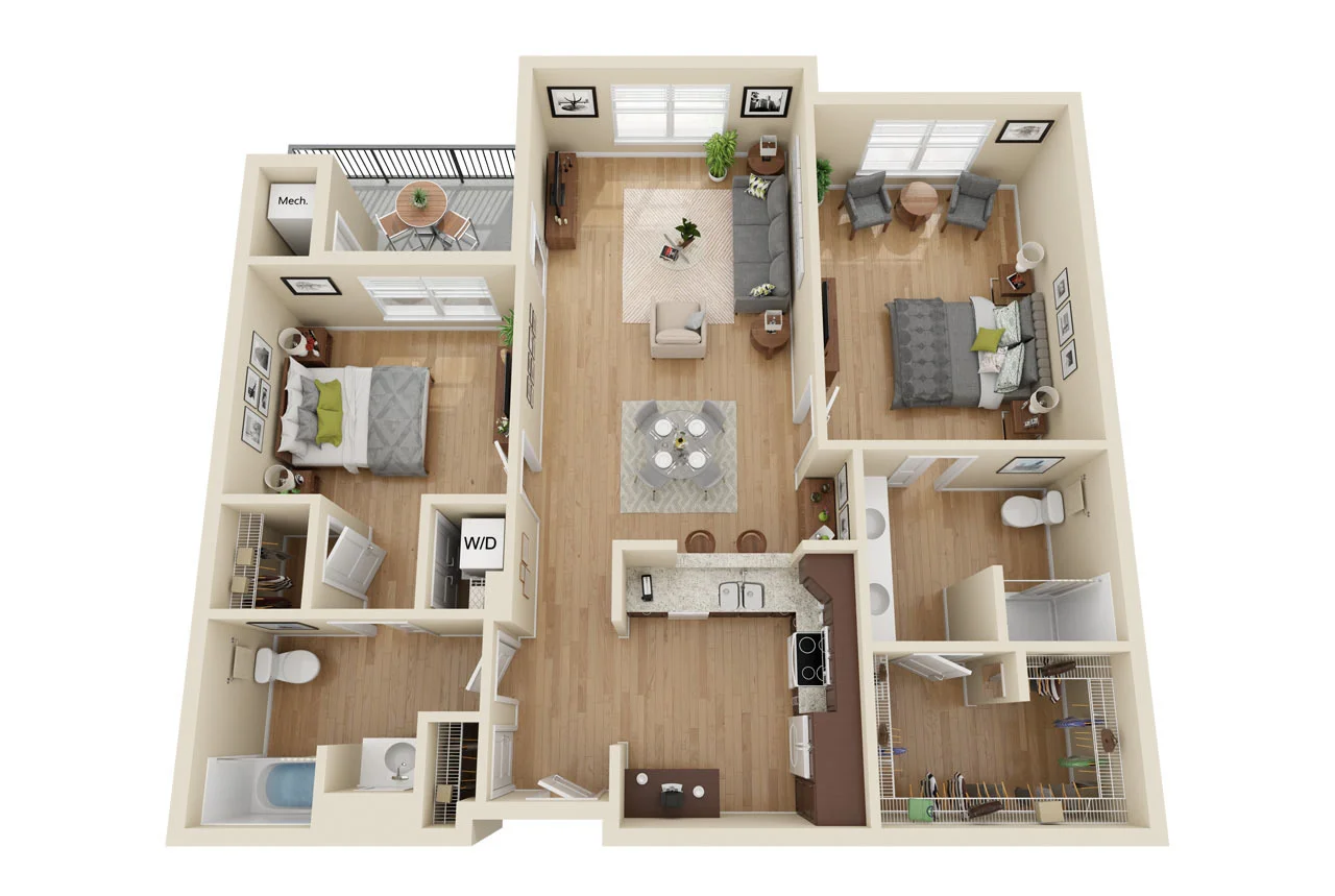 Complete the form below to learn about our Wait List. Welcome to grand luxury living. The minute you step into the Heather, you'll feel the wide open spaces, with a large living/dining area, optional French doors to create a den or office, two large bedrooms with walk-in closets and full baths, and two balconies/patios.