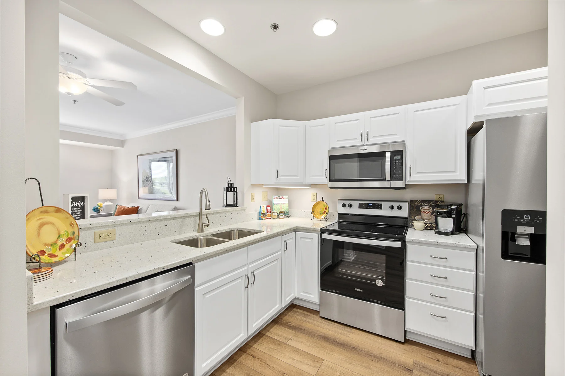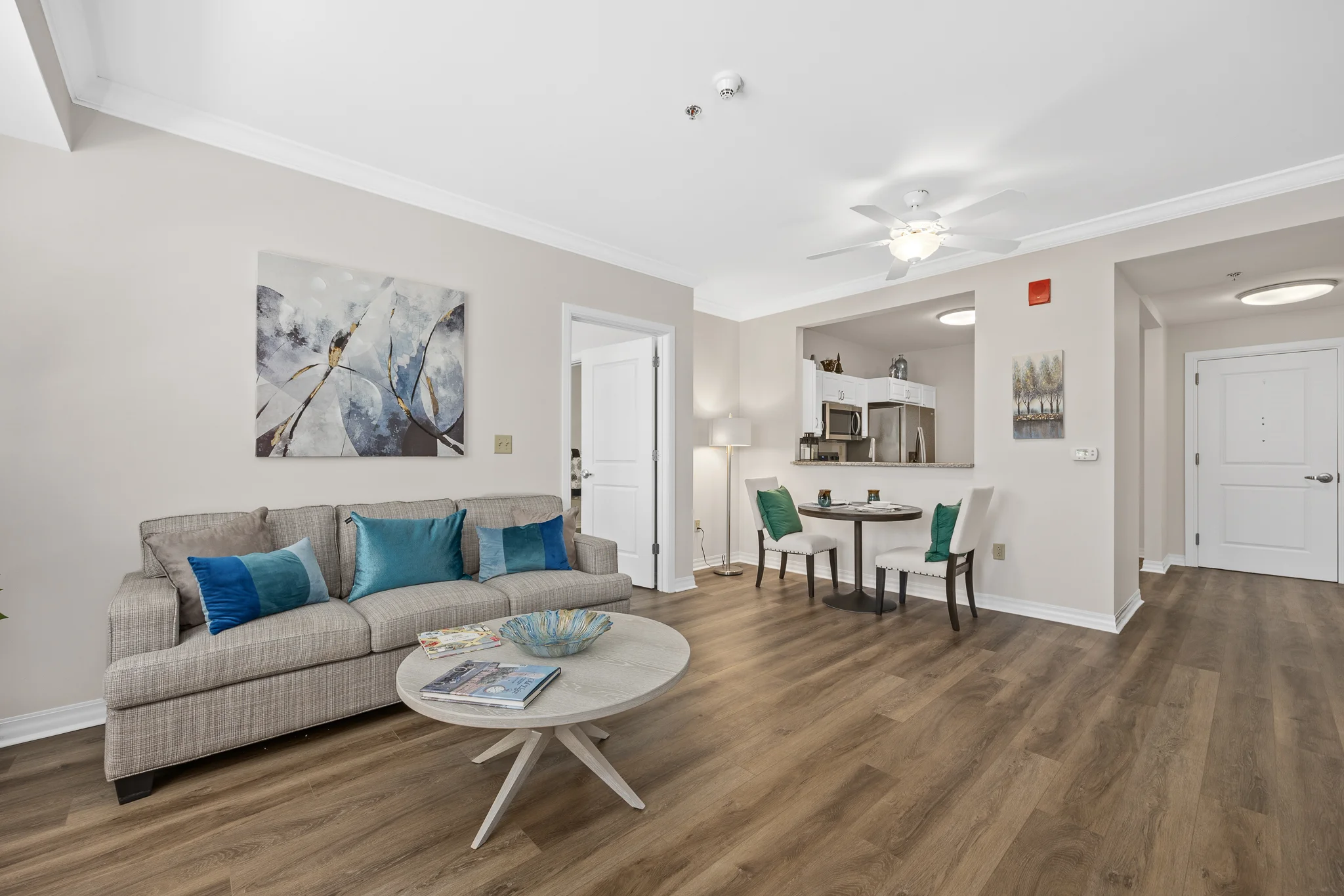Complete the form below to learn about our Wait List. Experience the wonder of the Jasmine Bay apartment, our grandest Independent Living residence. You'll enjoy the luxury of a modern layout boasting an open-concept kitchen, generous living/dining areas, an optional den or office, a half-bath for guests, two sizeable bedrooms with walk-in closets and full en-suite baths, as well as two private balconies/patios.